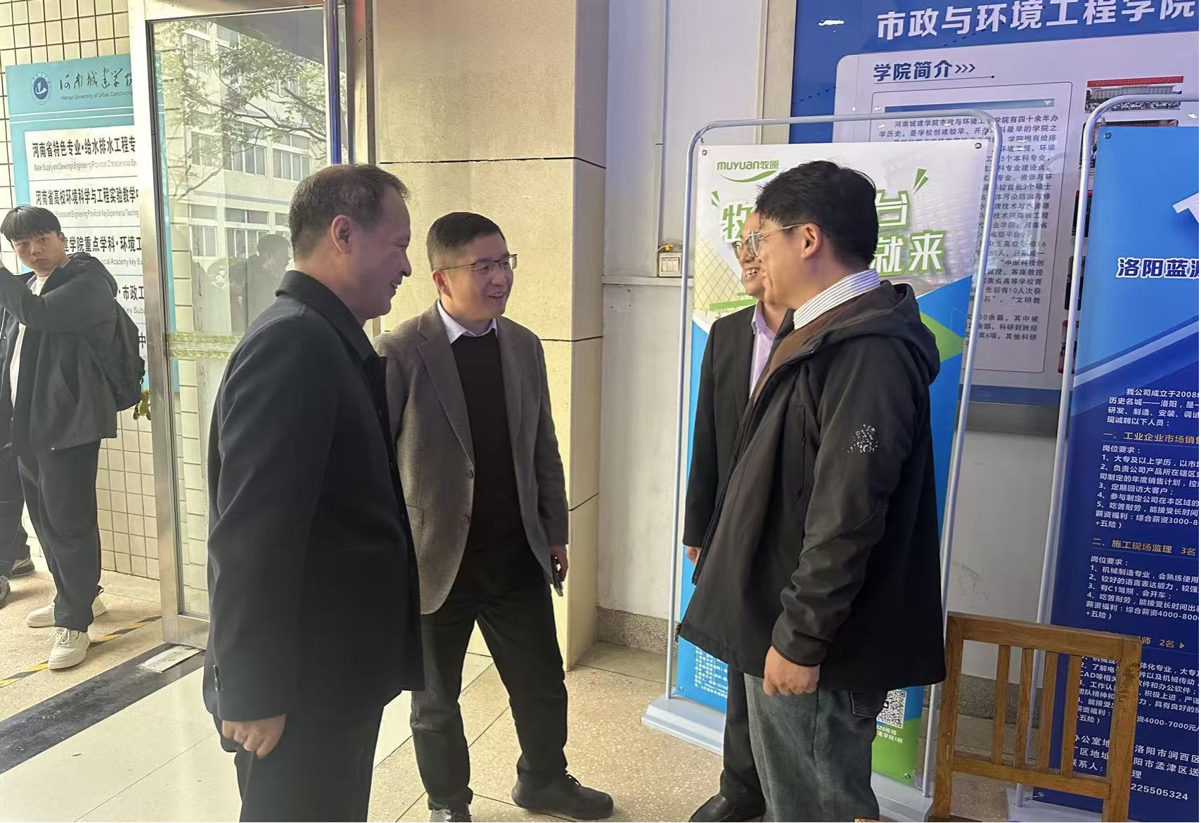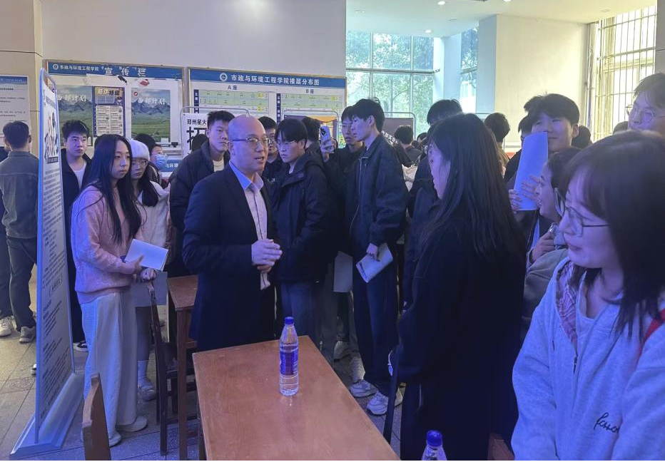 10月23日下午,我院在9号A座教学楼大厅举办2026届毕业生秋季双选会。院党委书记曹恒慧、院长姜忠峰、副院长宋忠贤、各专业系主任、毕业班班主任及毕业班辅导员参会。北京碧水源科技股份有限公司、洛阳蓝源环保科技有限公司、河南省力华全环保科技有限公司等十余家企业参会,现场提供招聘岗位超100个,吸引300余名在校生参加双选会。
