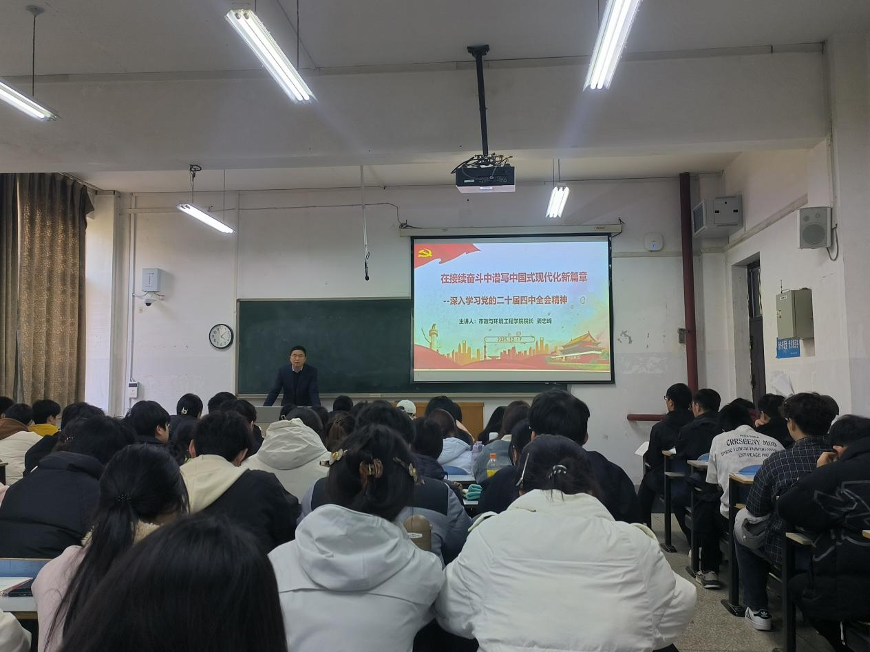 12月17日,市政与环境工程学院院长姜忠峰在9号教学楼A408教室,以《在接续奋斗中谱写中国式现代化新篇章》为题,为学院学生讲授了一场主题鲜明、内容深刻的思政课,专题学习党的二十届四中全会精神。