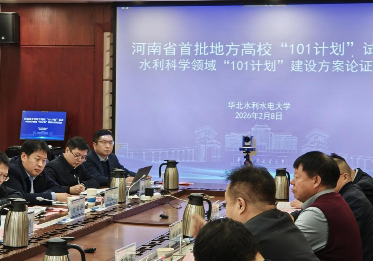2月8日,河南省首批地方高校“101计划”试点——水利工程“101计划”建设方案论证会在华北水利水电大学顺利召开。我校作为受邀单位,由市政与环境工程学院院长姜忠峰带队参会。省教育厅高教处白威涛到会指导,内蒙古农业大学等多所高校知名专家学者担任论证专家。华北水利水电大学校长刘俊国致辞、副校长宋刚福主持会议。