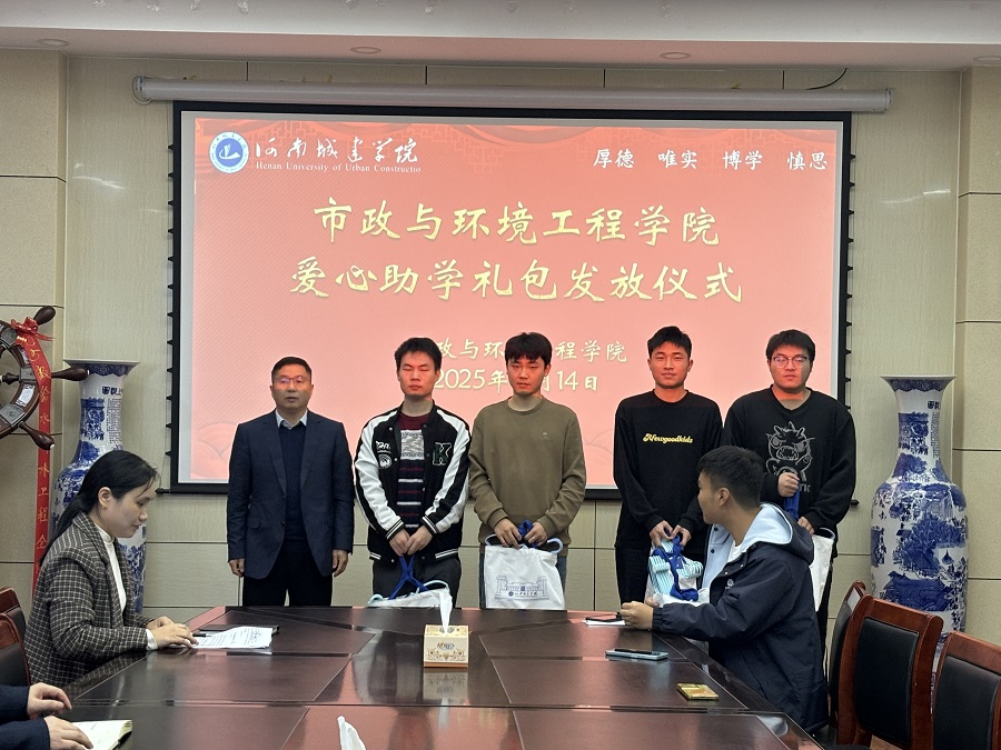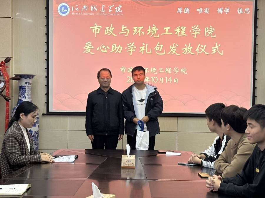 为将国家资助政策落到实处,构建全方位的资助育人体系。10月14日下午,我院在9号楼A315会议室举行市政与环境工程学院2025级新生爱心助学礼包发放活动。学院党委书记曹恒慧、院长姜忠峰,辅导员及新生代表参加本次活动。