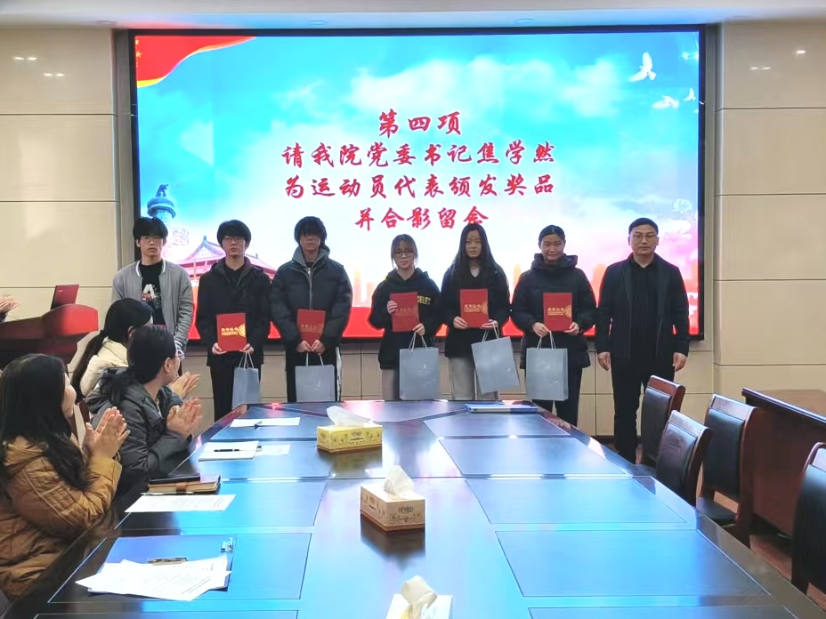 表彰环节中,学院领导分别为万米接力赛优秀运动员、华光体育活动先进个人、万米优秀志愿者颁发奖品和荣誉证书,并与获奖代表合影留念。