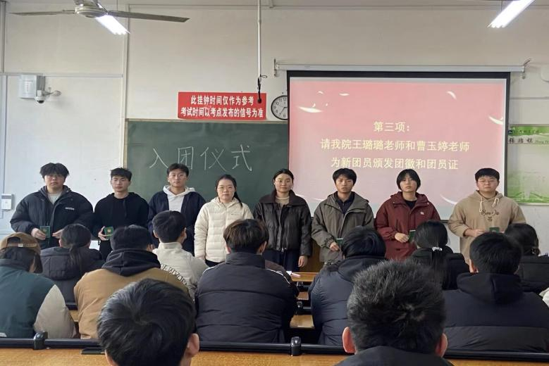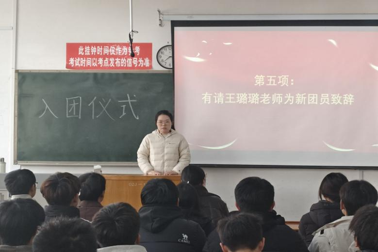 为深入贯彻党的青年工作方针,持续加强共青团组织建设,进一步凝聚青春力量、传承五四精神,1月12日,我院在9B409隆重举行2025年下半年新团员入团仪式。学院团委副书记王璐璐、辅导员曹玉婷以及全体新团员共同出席。